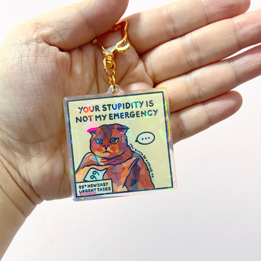 "your stupidity is not my emergency" keychain