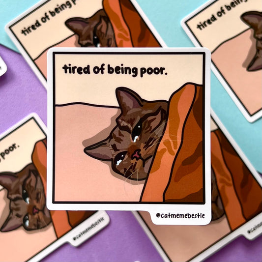 "tired of being poor" sticker